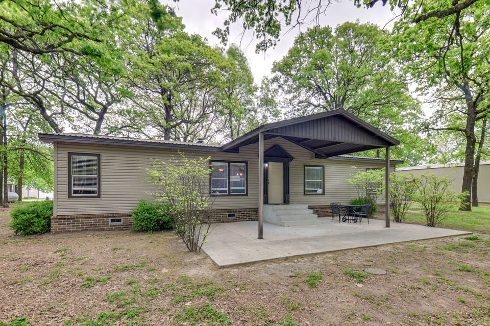 This Kingston vacation rental has everything you need for a blissful stay, from afternoon BBQs to making memories on the water. Located in a lakeside neighborhood, this 3-bedroom, 2-bath home offers ample outdoor space and entertainment options. Walk to Lake Texoma and enjoy swimming, boating, and skiing, or venture out for striped bass fishing, a round at Chickasaw Pointe Golf Club, or a night at Megastar Casino.