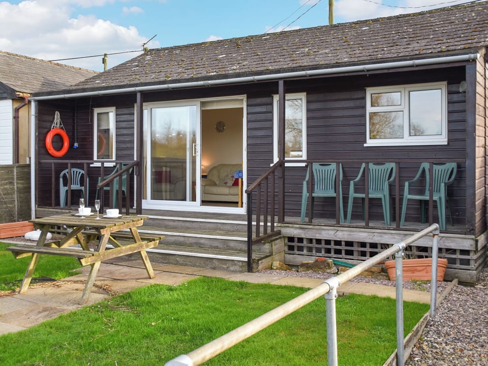 Shower Room: Cubicle Shower, Heated Towel Rail, Toilet, Grab Rail. Bed linen, towels and Wi-Fi included. Electric central heating and electricity by coin operated meter. Lawned back garden with sitting-out area and garden furniture. Private parking for 2 cars. No smoking. Please note: There are 3 steps in the garden.. This charming riverside chalet offers a wonderful detached setting, complete with its riverfrontage. All on one level, it features a spacious open-plan living area, where a large patio door floods the room with natural light. This opens onto a covered seating verandah and a lovely lawn garden that leads directly to the waterside. The property maximizes its stunning riverside views, which can be enjoyed from the decked seating terrace – the perfect spot to relax, soak up the sun and watch the boating activity. The chalet is well-equipped for dining in, boasting two lovely bedrooms and a level-access shower cubicle. Whether you’re seeking an active holiday or a more laid-back experience, this property offers something for everyone, and you’re sure to be delighted.