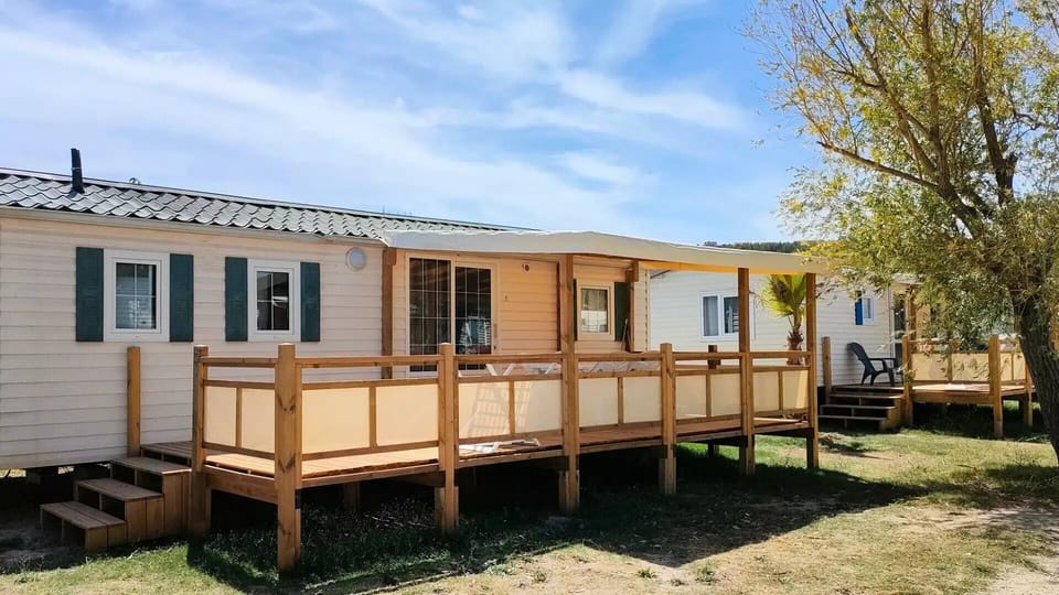 Details: Beach Access : 30 m Wi-Fi access : (one code per device): €5 for 2 days; 15€ for 1 week ; 25€ for 2 weeks - to be paid on site Playground for children Children's animation : Children's Club from 4 to 12 years: manual activities, painting and great games of all kinds - in high season (from 06/07 to 28/08) from Monday to Friday Family animations : Live evenings - evenings once a week - from 06/07 to 28/08 Deposit (in supplement) : 300 Baby chair : 4€/day- to be paid on site Deposit of bread : High season Grocery store : Essential products - in high season Final cleaning fee : 85€/stay (excluding kitchen) - to be paid on site Laundromat : With 2 washing machines and a dryer - rates and on-site regulations Bedding : Disposable sheets : 12€/single bed, 18€/double bed - to be paid on site Crib : 4€/day- to be paid on site Number of stars : 3 Water park : open daily from 4 April to 2 November bowling Ping Pong Swimming pool : Outdoors - swim shorts, complete jerseys, burkini and strictly prohibited diving suits Near airport : Marseille Provence Airport #MRS (22.1 km) Environmental charge : 1 .25 euros per day per person - to be paid on the spot Restaurant Snack bar Tourist tax (surcharge) : €0.86 per day per person over 18 - to be paid on site Pets Allowed : With supplement - Tenus on leash Cooked Microwave oven Number of bedrooms : 3 Number of toilets : 1 Number of bathroom : 1 Surface (m²) : 32 Television Number of pieces : 4