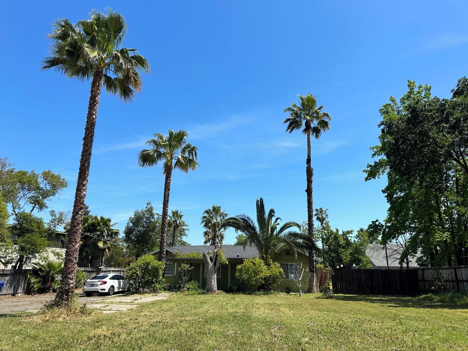 Unwind in this peaceful palm-surrounded oasis with Kitchen Suite A—your self-contained retreat in Sacramento! This suite boasts a private entrance for complete privacy, a comfortable queen-size bed, and a full private bathroom (just like Suite B). The highlight is its well-equipped wet kitchen with a dining table, perfect for cooking up your favorite meals and enjoying casual in-suite dining during your stay. Free open parking is included for added convenience.