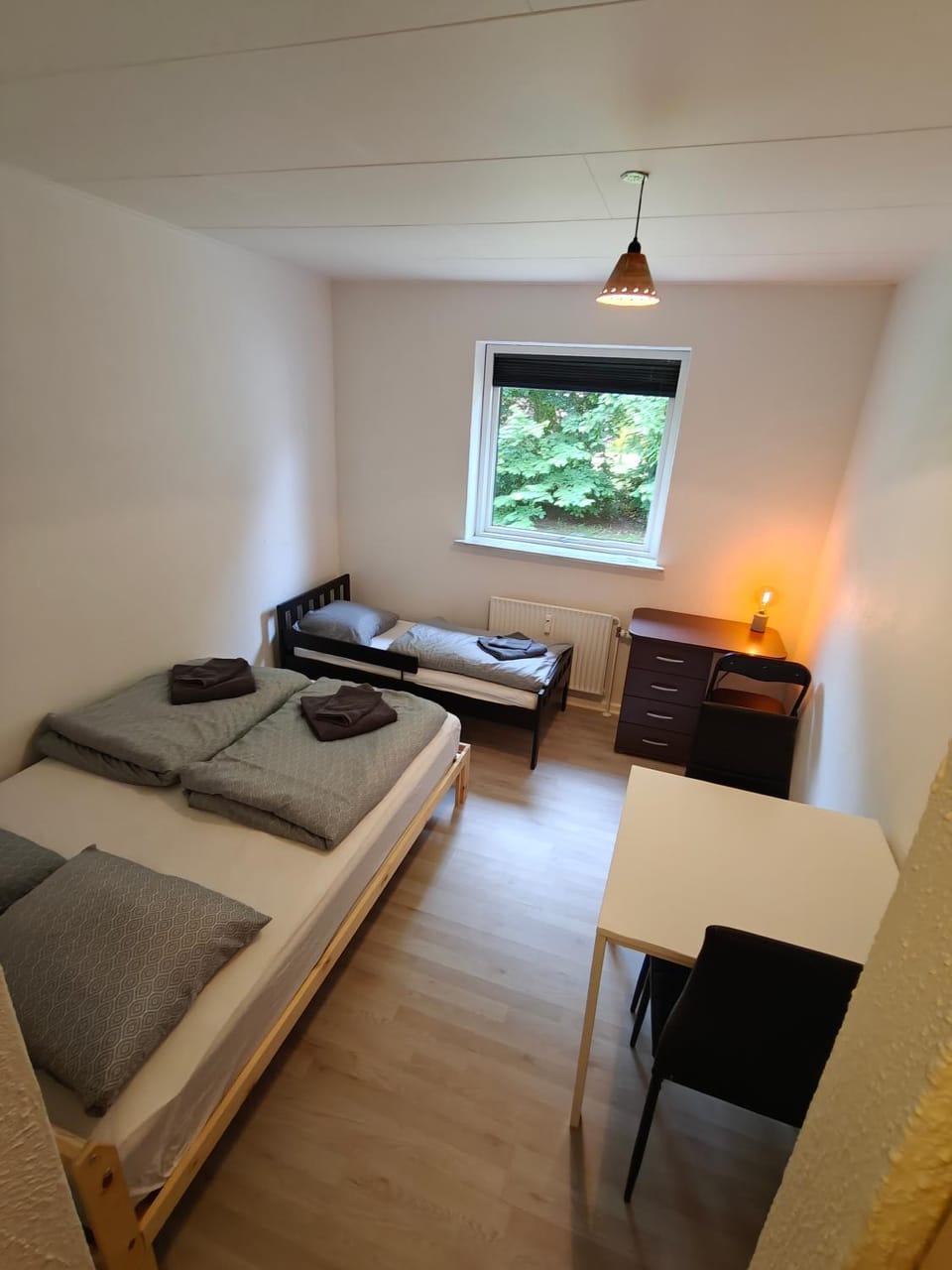 Perfecte locatie voor bezoek aan Legoland. Parkeren bij de locatie was erg fijn. Verder zoals verwacht: kamer met 3 bedden, een tafeltje, een keukenblok en douche/wc. Prima prijs.