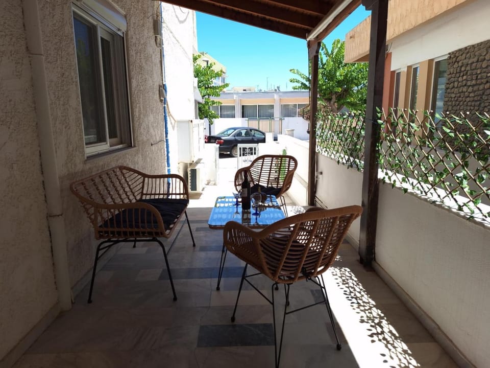 The size of the apartment was impressive. Plenty of space for us. A twelve minute walk to the main platia and centre of town. Well equipped kitchen, large fridge, washing machine and spacious bathroom.