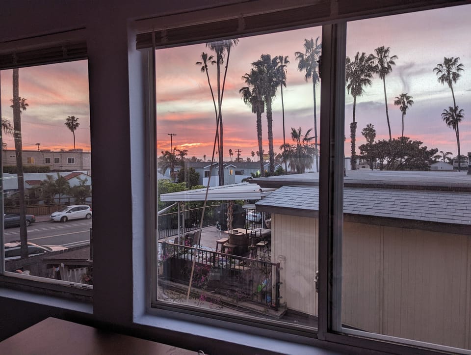 Among the sights you will see walking around are the amazing beach 2 ½ blocks away. At one end of the beach is the pier and Newport Ave, a street lined with antiques shops, beachwear and surf boutiques, organic groceries, taquerias and brewpubs. At the other end of the beach is dog beach. This is also where The San Diego River Trail begins and gives spectacular views of Mission Bay and access to quite a lot of San Diego without a car. Robb Fields Park lies between the trail and the property.