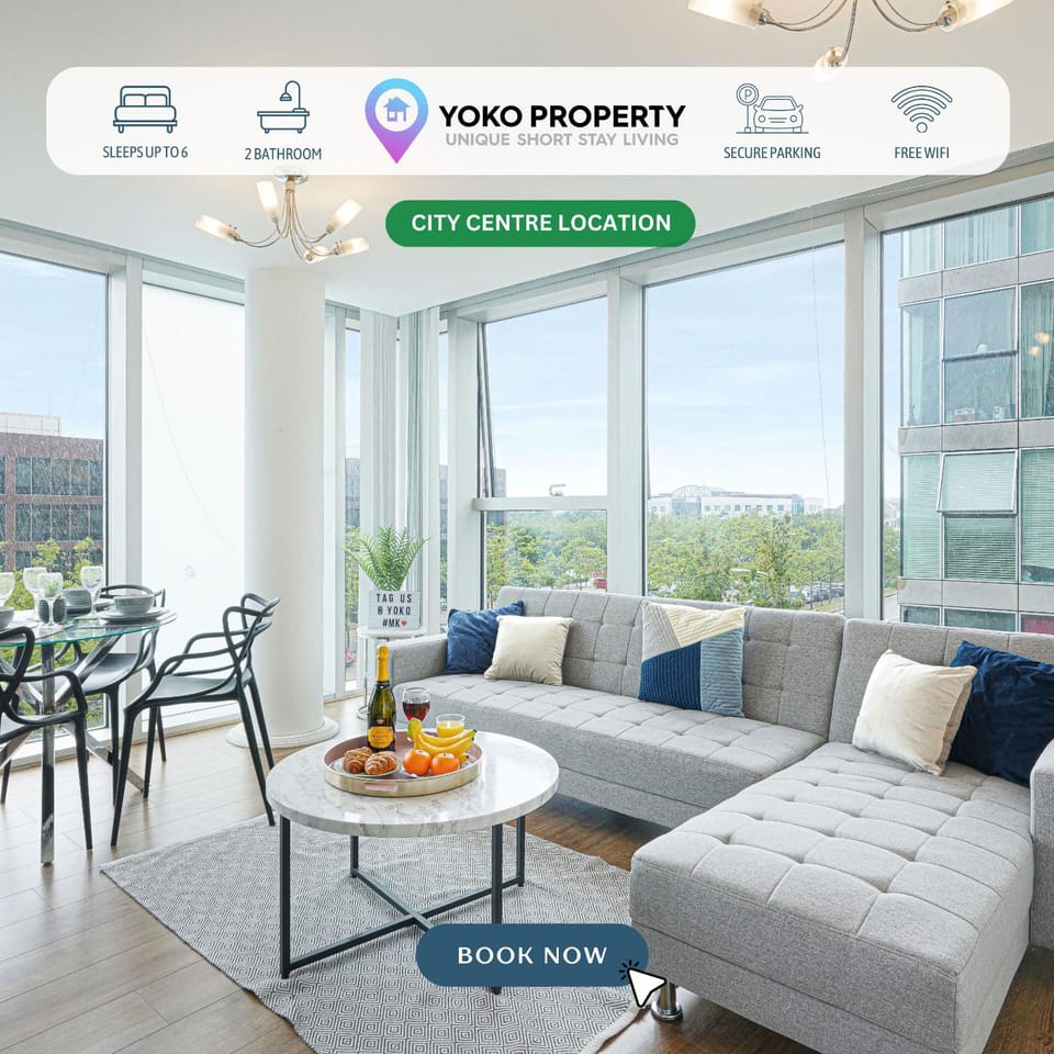 City Centre - Executive Hub Apartment - 2 Bedroom 2 Bathroom - Free Parking, Fast WIFI & Smart TV with Netflix by Yoko Property is located in Milton Keynes, just 2.2 miles from Milton Keynes Bowl and 3.8 miles from Bletchley Park.