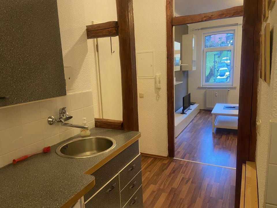 This is a nice little apartment. It has its own private parking, which is great if arriving by car. Access is easy, and location is very good, around 10 minutes by foot from Jena centre. A few fast food places, restaurants and supermarkets are in the close neighborhood.