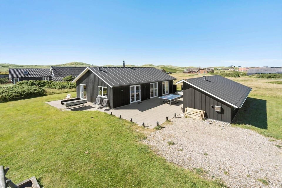 This vacation apartment in Vejlby Klit Strand, West Jutland, offers a spacious environment perfect for up to 8 adults and 2 pets. Spanning 120 m² on a generous 1,400 m² property, it features four cozy bedrooms, each equipped with double beds, and a living room that doubles as a sleeping area. The open kitchen is a culinary haven, complete with modern appliances such as a dishwasher, electric/gas stove, oven, microwave, refrigerator, and coffee maker, ensuring all needs are met. The bathroom includes a convenient shower, while the living area offers entertainment through a Smart TV with access to various channels. Additional comforts include Wi-Fi, a washing machine, dryer, floor heating, and energy-efficient heating. Just 100 meters from the beach and 200 meters from shopping, this residence combines comfort and convenience for an ideal getaway. A swing and sandbox on the property enhance the charm for families.