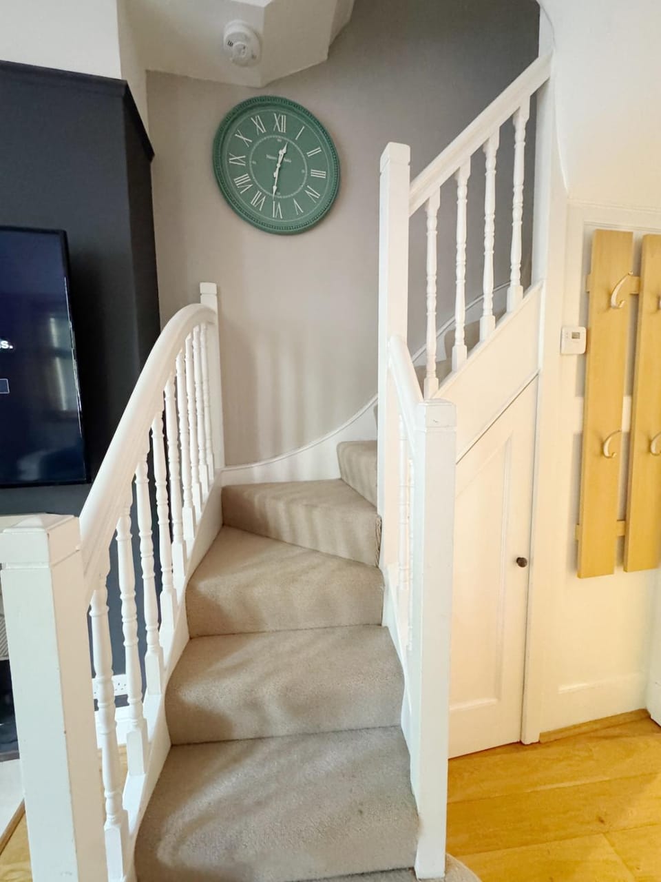 ان جنب الباب فيه جرس لمندوبين التوصيل ودايم يغلطون ويرنون الجرس بالليل وفيه درج طويل وفيه مكيف متحرك لكن اذا شغلته يطلع حراره من ورا يعني ماله فايده