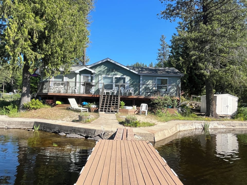 We are ideally located on Lake Sacheen in a no wake zone with a sandy beach front and a private dock. Relax in the shade and read a book and get ready for a lovely kayak down the narrows to the head of the Little Spokane River.