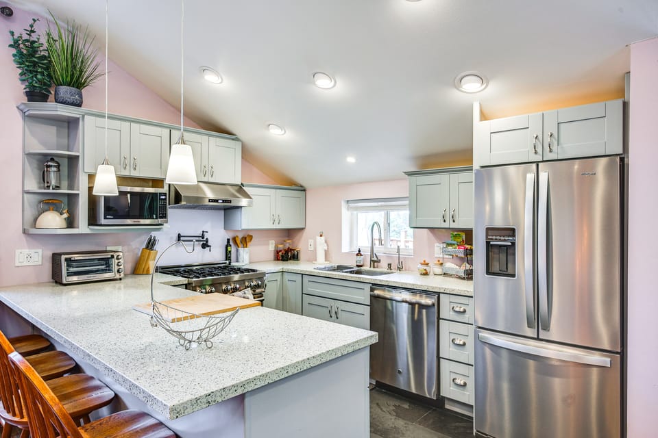 Welcome to your next Tacoma vacation rental — a private 1-bath studio that’s been thoughtfully updated to provide the perfect getaway. Whether you're in town for business or a couple's retreat, this spot offers all the essentials, including a full kitchen, a cozy living space, and in-unit laundry. Spend your days exploring the city, then return to unwind with a drink on the spacious deck.