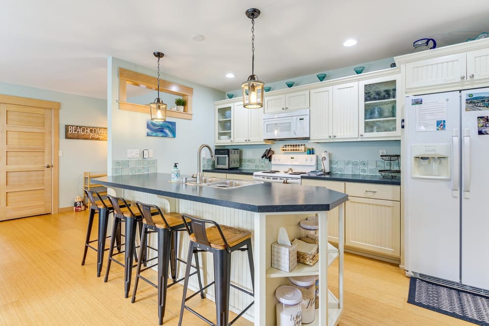 What amenities are available at Steps to Beach Home with Hot Tub in Oak Harbor!?