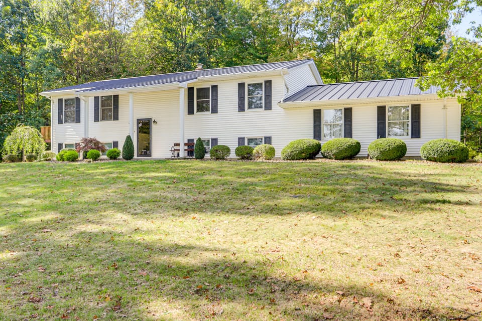 Find your own slice of serenity at this 3-bedroom, 2-bath vacation rental in Plymouth! Set among Ohio's peaceful pastures, this home invites nature lovers and adventurers to unplug and unwind. Whether you're reeling in the catch of the day, roasting s’mores under a star-studded sky, or taking a day trip to Cedar Point, you'll find yourself making memories at every turn. Countryside lounging is just a click away!