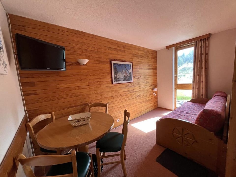 Amenities at 100m from resort center, 8th floor, view ski slopes, balcony, tv, ski locker, 28m², La Plagne