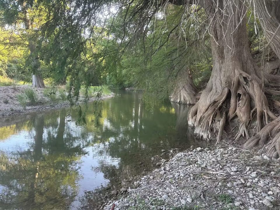 The River Bend House sits on 1.7 acres on a beautiful bend of the Guadalupe River with very large cypress trees. Bring your outdoor chairs and sit on the beach or shallow part of the water. Bring your fishing poles for some fishing fun. **Bring your own beach towels.