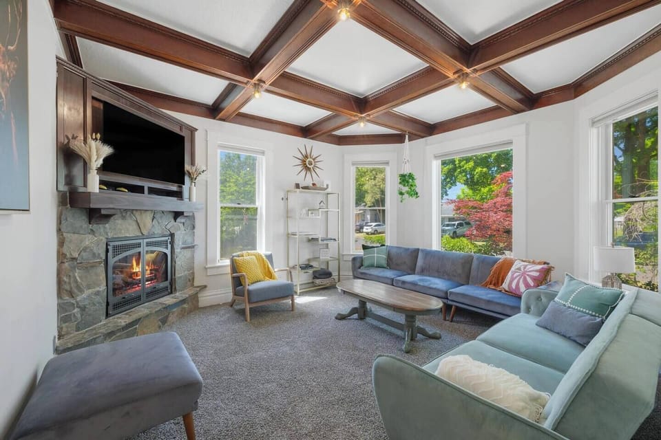 With central A/C, fast Wi-Fi, and a pet-friendly setup, The Landing offers a practical and comfortable home base. It’s ideal for groups who want to stay together but still enjoy personal space—perfect for splitting up adults and kids, or two families traveling together. Enjoy walkable access to Midtown’s markets, breweries, stores, and coffee shops, and take a short stroll or drive to Downtown CDA’s restaurants, parks, boutiques, and the famous Lake Coeur d’Alene with its expansive beach.