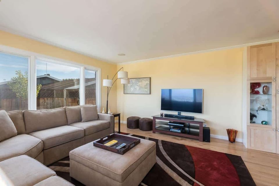 This home features an open living space with beautiful views from the living room. The living room boasts an extra large sectional sofa to make for comfortable seating and conversation. The smart TV is perfect for streaming your favorite shows.