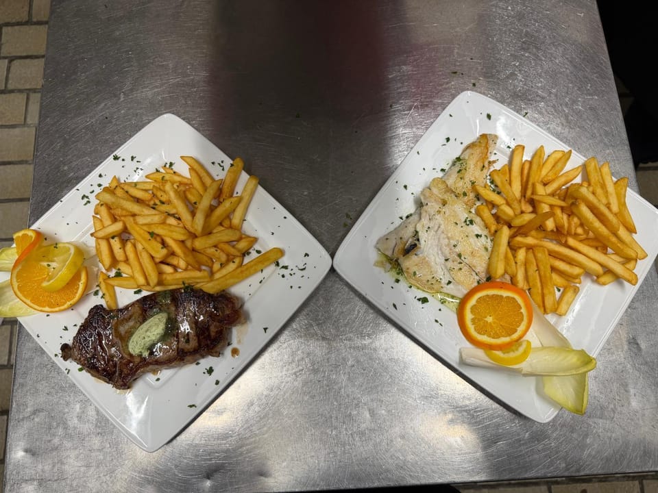 Im Erdgeschoß ist ein italienisches Restaurant mit sehr leckerem Essen.