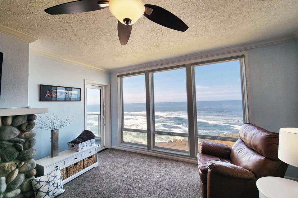 7.2 miles from Otter Rock in Depoe Bay, Spectacular Ocean Front Condo with Community Club House & Pool! Whale Crossing provides accommodations with access to a hot tub and fitness room.