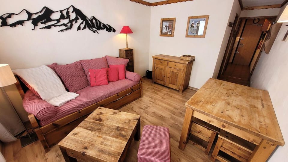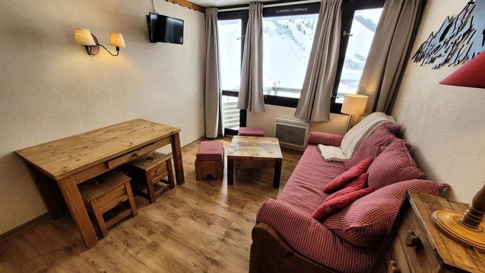 Experience vacation in Mâcot-la-Plagne with our Apartment, Comfortable renovated studio, south balcony, ski-in/ski-out. Enjoy amenities such as No pets allowed, Family friendly and Non-smoking, and more.