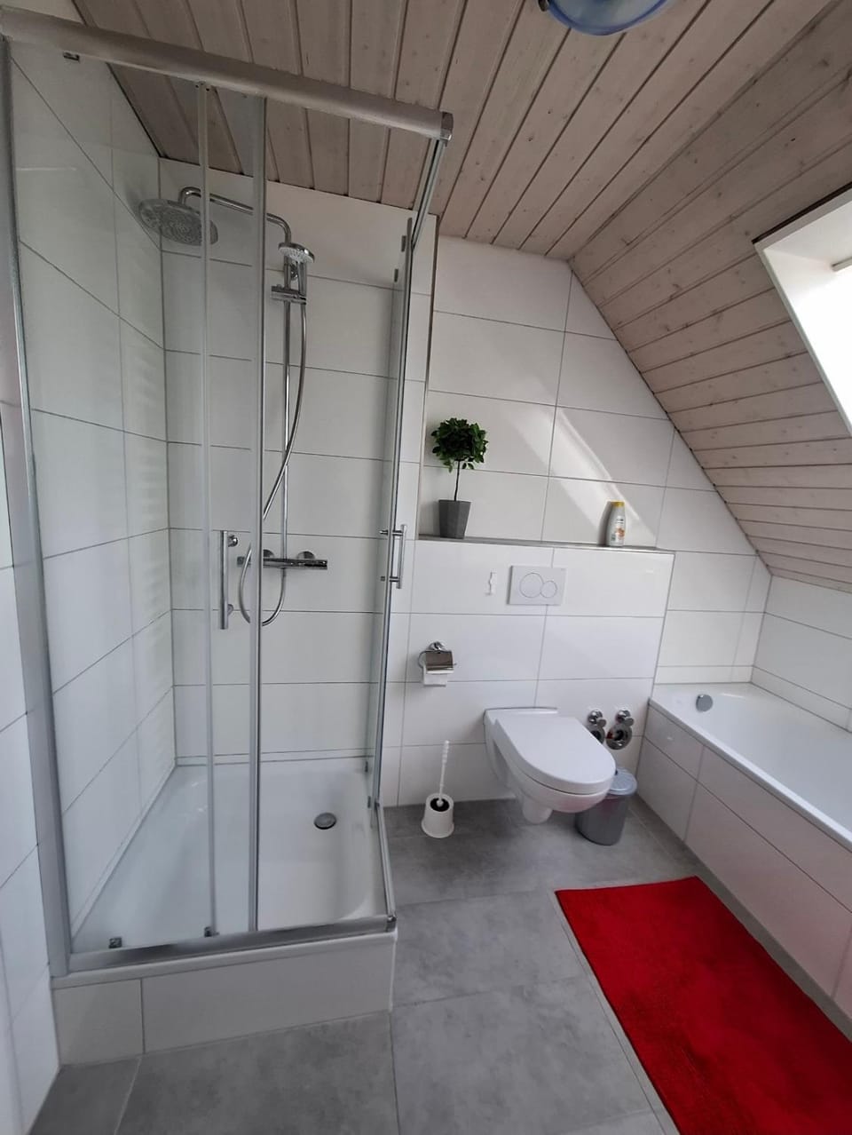 Apartamentul de la mansardă este spațios și frumos utilat, cu pat matrimonial, canapea, loc de luat masa și o baie mare, curată, dotată cu duș și cadă. Zona este liniștită, aproape de port, iar parcarea gratuită (în noiembrie) se află la doar 1–3 minute de mers pe jos. Singura problemă a fost patul: somierele erau defecte și au căzut de pe suport, fiind nevoie să improvizăm. Este păcat ca un apartament atât de plăcut să piardă din valoare din cauza unei probleme tehnice minore, care ar trebui remediată. În rest, șederea a fost foarte bună și recomand locul.