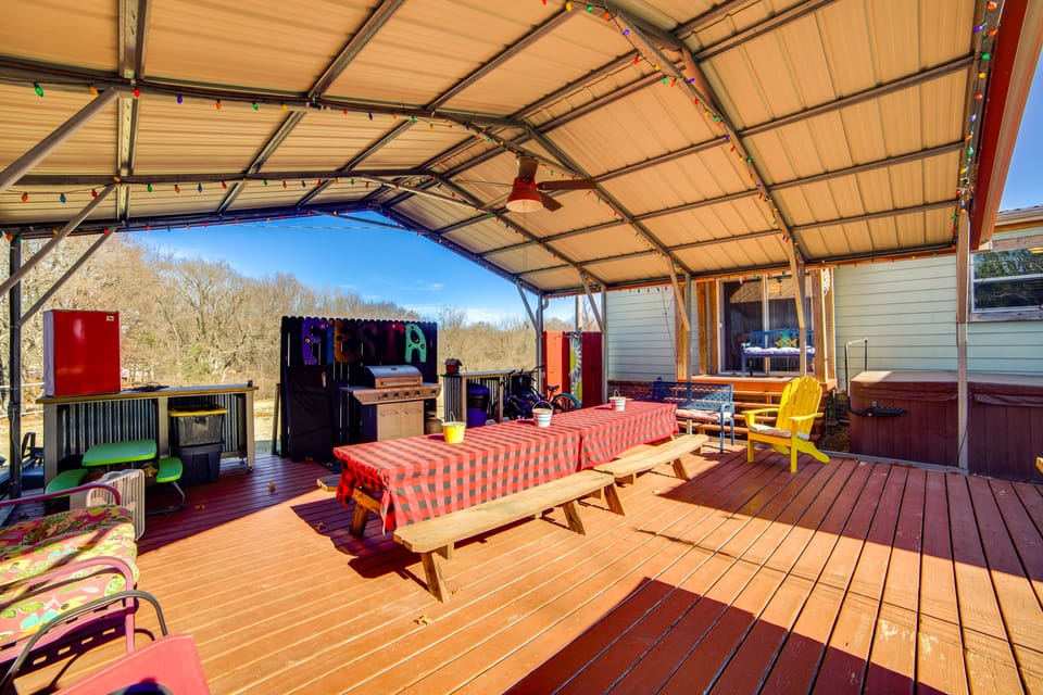 Lake days, backyard games, and nights around the fire — this Kingston vacation rental is made for memory-making. Just minutes from the water, this 3-bedroom, 2-bath getaway is your home base for sunshine-filled adventures and laid-back evenings with your favorite people. Need a break from the outdoors? Swap the swimsuits for slot machines, or call it early and snuggle up for a movie on the big screen. Make Oklahoma your playground today!
