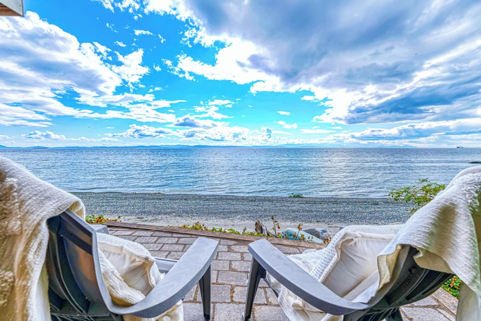 Oh so private and perfectly perched, this Point Roberts cottage studio boasts pristine views of the Strait of Georgia, Vancouver Island, and the passing ferries to/from the Tsawwassen Ferry Terminal. With its unforgettable location and expansive outdoor space, your time spent enjoying the fresh sea breeze will come effortlessly. Less than 10 steps down from the patio, find yourself on the sand, enjoying the beach.