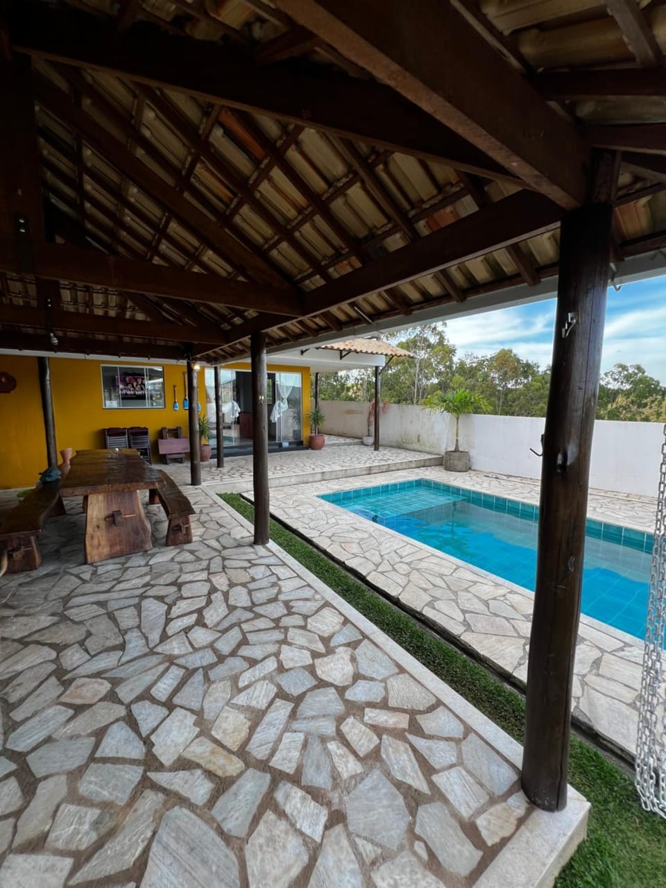 Yes, a swimming pool is available for use at Casa do Poeta JF. Enjoy the water!