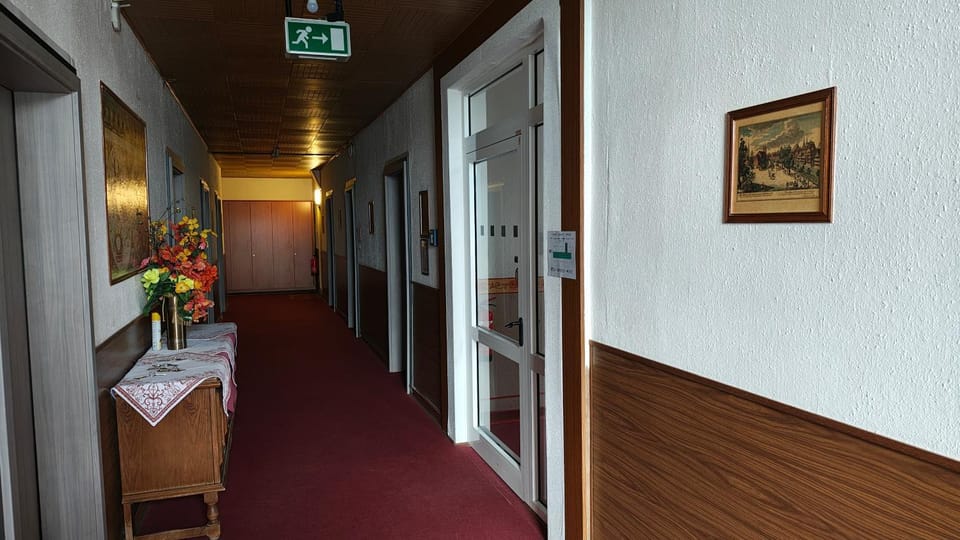 Zimmer war zwar augenscheinlich rein, doch bei genauerem hinsehen fanden sich z. B. zugestaubte Spinnweben hinter, neben, unter dem Bett. Kleiderschrank war vorhanden, nicht groß doch für eine Person absolut i. O. Doch leider waren Schranktüren schon halb am heraus fallen.