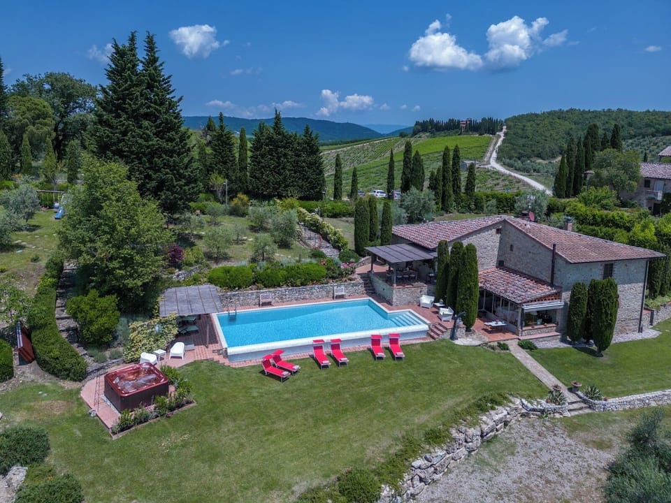 Villa Spicchio is located in a very panoramic position between Radda in Chianti and Gaiole in Chianti and enjoys total privacy among the hills of the Chianti countryside characterized by olive groves, vineyards and beautiful woods for walks in contact with nature, but not far from shops of all kinds.