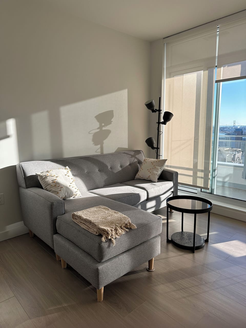 Both bedrooms feel bright and comfortable, with large windows and a simple, restful design. The two full bathrooms are sleek and modern, offering a clean, polished feel with practical everyday comfort. The layout feels airy and uncluttered, with useful storage and a bright, elevated feel in every room. Ideal for couples, small groups, business travelers, or longer stays, this home blends comfort, function, and beautiful city light in one refined space.