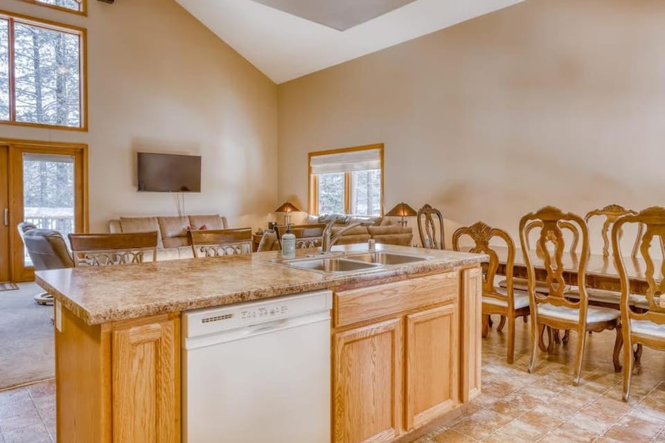 Three-story lakefront home with lake views wood fireplace high-speed WiFi W&D is located in Soda Springs, just 18 miles from Schaffers Mill and 19 miles from Lahontan Golf Club.