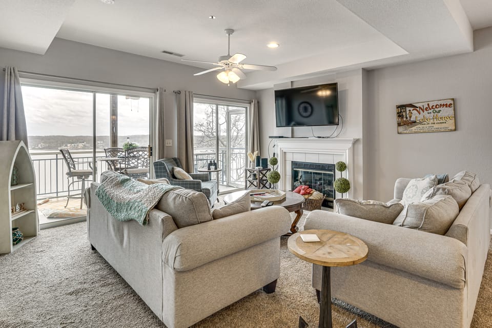 Waterfront serenity meets family fun at this Lake Ozark vacation rental in the Palisades community! From the private balcony overlooking the shimmering water to 3 sparkling community pools, every detail of this condo is designed for ease. Spend your days trekking through Lake of the Ozarks State Park or shopping in Osage Beach before returning home to relax. Your best vacation yet is just a click away!
