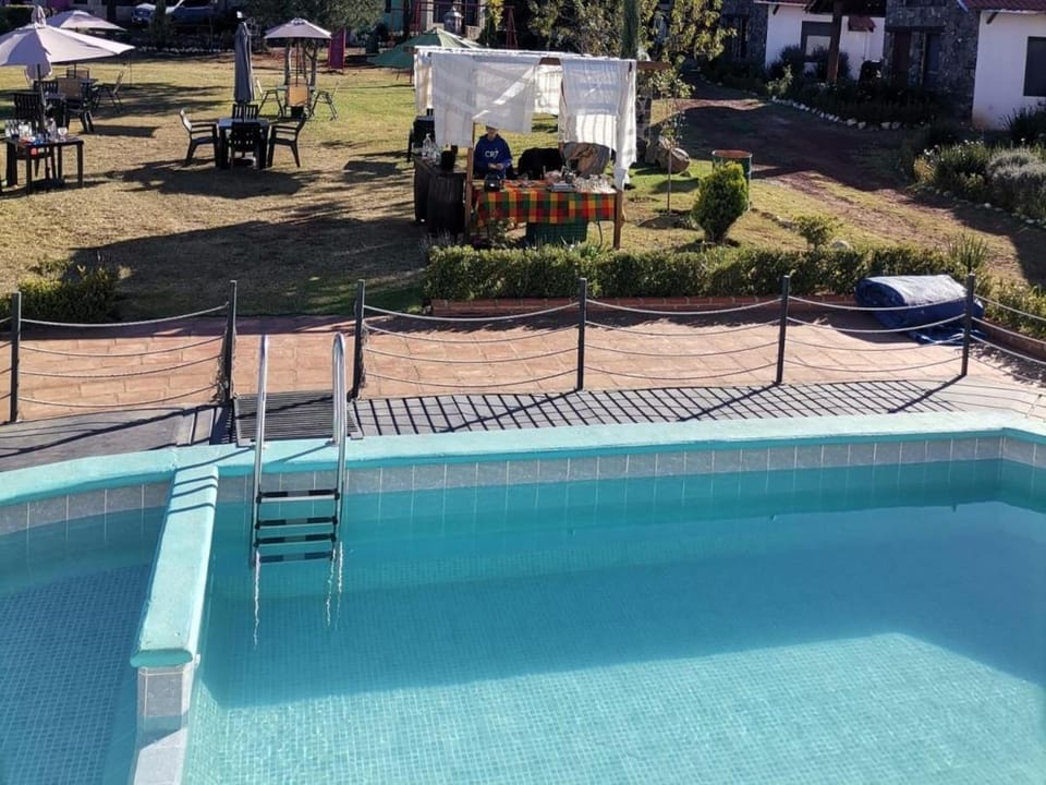 Yes, a swimming pool is available for use at Namasté Cabañas, Huasca de Ocampo. Enjoy the water!