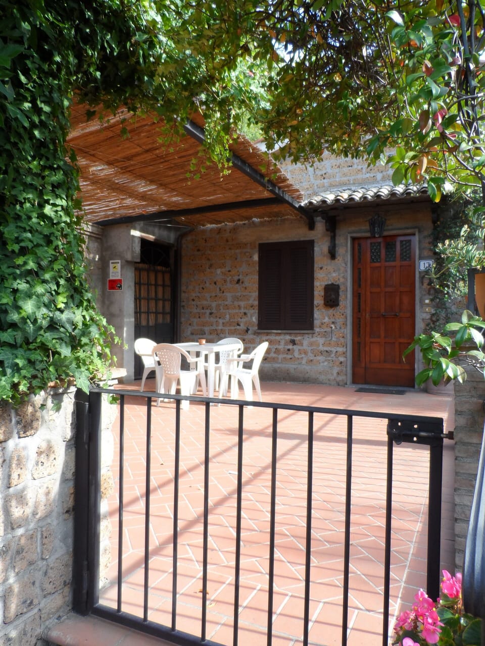 House decorated in style from an old master carpenter with mobilE TYPICAL solid wood (some antiques) and trussed breathtaking, recently renovated. Area overview. Suggestive additional indoor and outdoor furniture in wrought iron of local handicrafts (appliques, chandeliers, lamps, railings. Room, bedroom, bathroom and washing machine with large living room with kitchenette. Caminetto with wood stored in a warehouse will close on the terrace. PARKING PRIVATE COVERED, useful also because parking near the old town of Orvieto are few, almost all pay and with narrow alleys reachable. GRANDE TERRACE EXCLUSIVE 32 mq.con table, chairs, wooden rocking chair, separated by walls and hedges. A large pergola provides shade and privacy in the terrace surrounded by walls and hedges with a pound banister. NEIGHBORS U.S. owner lives and we are naturally available from tips and brochures to visit the territory. We are aware of the need for autonomy and privacy. Even if it is quiet in a quiet area statistically, we installed the blinds armored. THE AVERAGE PRICE OF EURO 350.00 WEEKLY little to fear. Includes all consumption (water, enel, gas, etc.) with sheets and a set of 3 towels per person to change every week. Animals are welcome because we have them, because hardly used at home cause damage, and because the solid wood furniture does not have shares fragile.