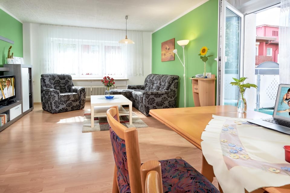 Die Wohnung befindet sich im Kurgebiet am Stadtrand, es gibt Aussenrolläden, einen eigenen Parkplatz, einen Aufzug und eine Waschmaschine im Keller. Barrierefreie Ausstattung, Haltegriffe, höhere Betten und 2 Balkone. Es war einfach reizend dort, pure Erholung. Ein Kleinbus fährt in die Stadt mit der Kurkarte. Wir haben die Nähe zu Freiburg, Frankreich und der Schweiz gesucht und mit drei Schlafzimmern dort gefunden. Sehr nette Vermieterin. Alles ganz grossartig!