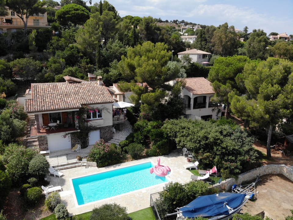 (Text automatically translated) near the sea and coastal path (150m), the Roman pool classified the Fereol harbor (200m) from the beach (700m), in a flowery garden (1600m ²), flat, accessible to very young children, perfectly suitable for 2-4 families seeking a family holiday together. This property includes two separate accommodations, comfortable and luxurious with everything you need to relax and enjoy the sea in front of you in a radius of 180 °. Its four large terraces, oriented at different exposures are used to find both sun and shade every hour of the day, according to taste. You will also find a ping pong table, a small playhouse with slide and flat terrain to play bocce. Its fully enclosed by a security fence pool removable, allows holiday stress for parents of young children. Its sea view is stunning 180m, relaxing and restful. You'll pass the beautiful yachts and sailboats that sail between Cannes and Saint Tropez.