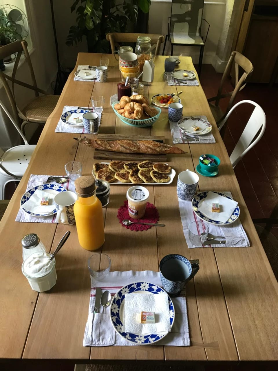 Belle table du petit déjeuner très complet.