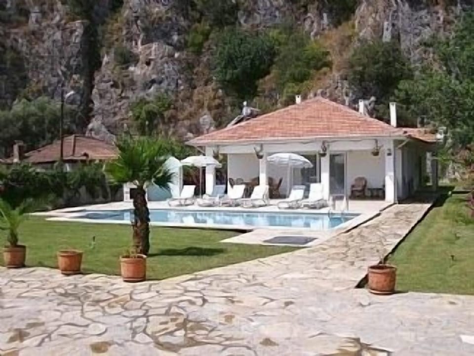 Villa sleeps upto 8 people. It has three bedrooms, two with en-suite, a family bathroom, fully fitted kitchen and open plan lounge/diner. Outside there is a walled garden with 10x5 mtr private pool and shower. Large sun and covered terraces with built-in barbecue, ideal for al fresco dining. The villa is situated in a quiet rural location (car recommended) just 20kms from Dalaman international airport, making this easily accessible from all UK airports. Only 15 kms from Dalyan and it's abundance of riverside restaurants, gifts and craft shops. The famous Turtle beach at Iztuzu and blue flag beach at Serengerme are only a short 15 minute drive.