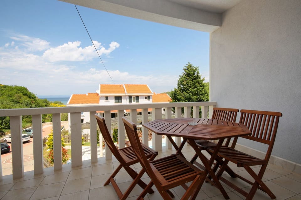 Apartment can accommodate 4 guests. Beds are situated in 1 sleeping rooms, but also in the living room, within 46m2. Guests can use a private terrace to enjoy the warm summer evenings. The apartment offers the sea view. Food can be prepared using barbecue which is shared with other guests too. Shared pool is on disposal during stay. For the booked accommodation unit the deposit is paid directly to the owner upon check-in (deposit amount is displayed on the website)