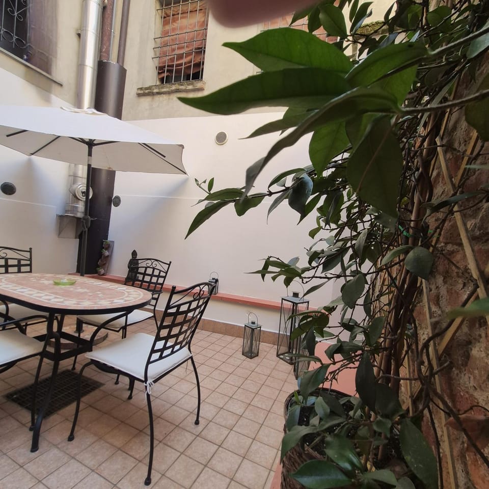 Die sehr ruhige Lage der kleinen aber feinen Wohnung war perfekt für uns. Diese lag mitten in der historischen Altstadt von Ferrara und wir konnten alles was uns interessierte zu Fuss besuchen. Besonders schön fanden wir den kleinen Innenhof mit Tisch und Stühlen. Leider konnten wir ihn kaum benutzen da das Wetter im März dafür noch zu kalt war.