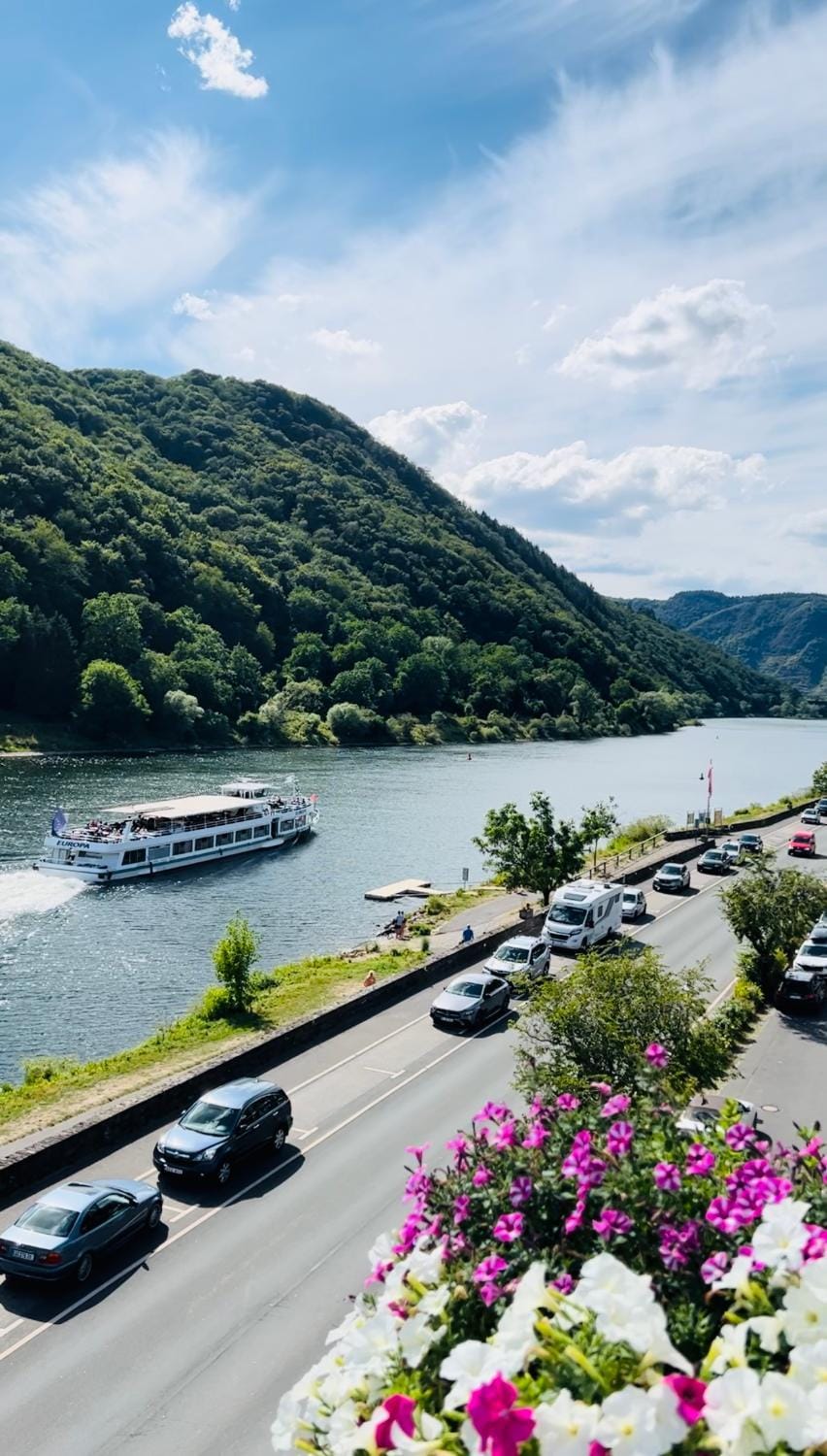 Mooie locatie tegenover de moezel , authentieke inrichting, mooie hotelkamer, super en heerlijk ontbijt maak je niet vaak meer mee, fijne personeel, persoonlijke sfeer, we hebben savonds in restaurant gegeten was heerlijk.wij hebben een heerlijk weekend gehad, wij komen zeker terug