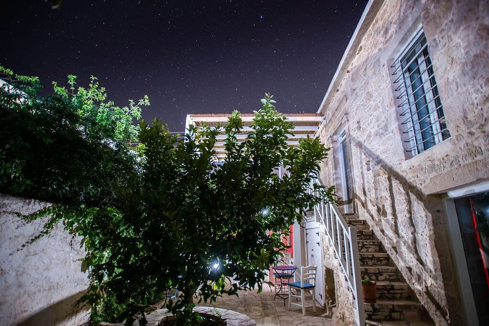 Located in Sivas village Chelidoni II has one bathroom, one double bed room (1st floor), one twin bed room,a bench bed, a kitchen and a balcony. It also shares a splendid yard with Chelidoni I apartment. Ideal for 4 people, there is the possibility to host a fifth person at an extra charge of 10 euro per night, it can be booked along with Chelidoni I in which case you get a house for 9 people. A vacuum cleaner, a broom , a dustpan and a mop are provided. We would advise you not to drink the water from the tap. Furthermore please keep in mind that you are responsible for your food and your cleaning supplies.