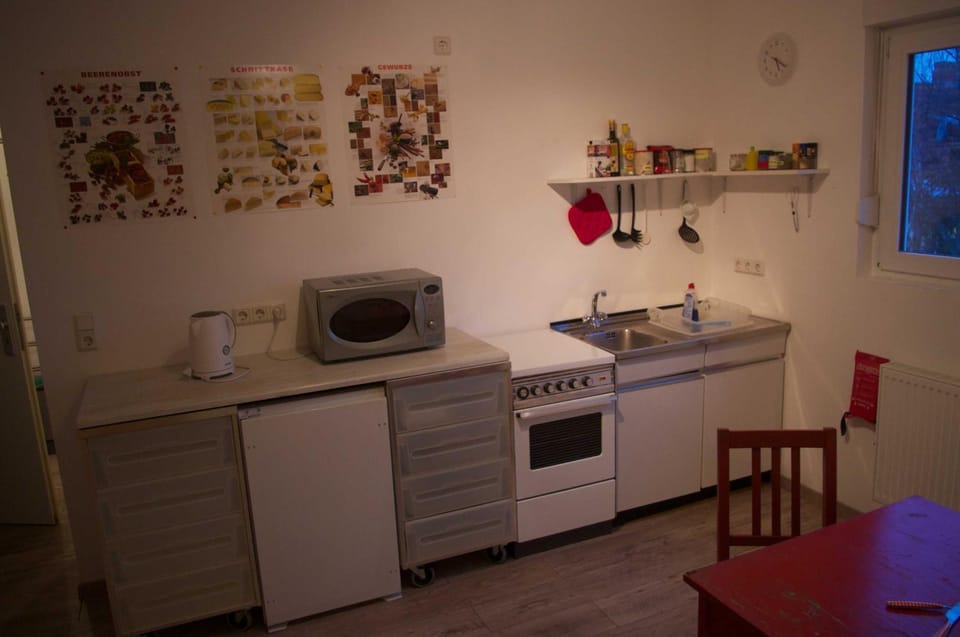 Quiet, in a lovely neighbourhood close to bakery, apotheke and a few stairs downstairs a netto discount supermarket. Half an hour walk from the city centre and the train station. Nice, clean, tidy, lovely view and very friendly owners living next door. Willing to help and assist you. If I go back to Saarbrücken, I will stay there.. They arrange for a taxi for us at 4 in the morning... The kitchen is well organised, you can prepare any meal. The place is simple but cosy. The bathroom is spacious and you can ask for extra towels. You can find tea and coffee facilities. I even found sea salt, rice etc. You spend your time nicely there. The internet is very good and free. It is too close to the university.