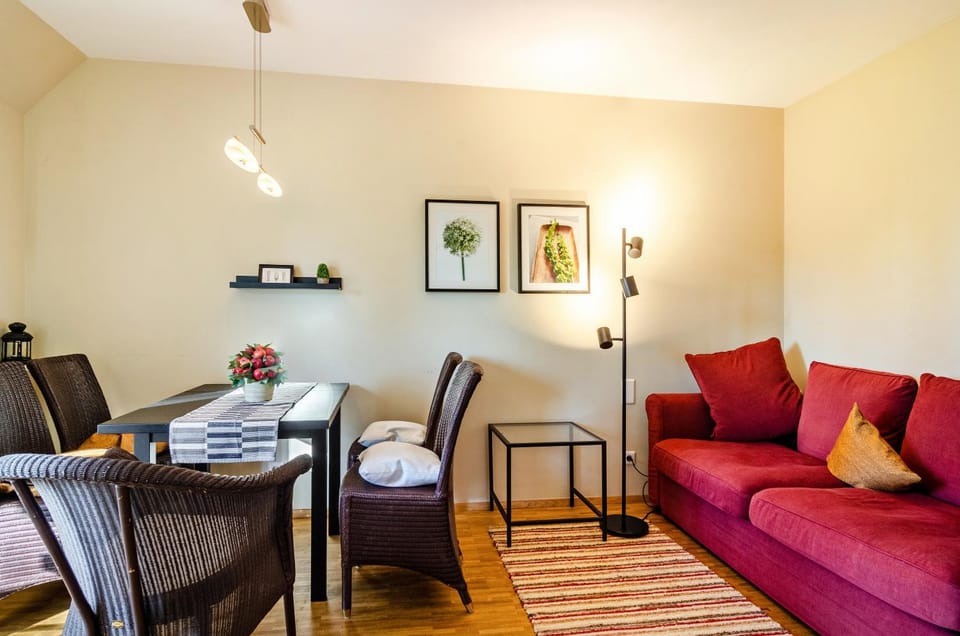 Das Apartment Nr.4 liegt im Dachgeschoss eines gepflegten Anwesens. Parkplatz, Fahrradgarage, Aussicht, ruhige Lage, schöner Garten, sehr gute Ausstattung machen den Aufenthalt angenehm. Vermieter wohnt im Hauptgebäude. Zugang über Code zum Schlüssel Safe