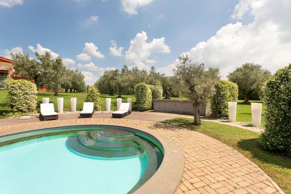 6.1 miles from Rebibbia Metro Station in Casale Torre San Giovanni, Ultra Luxe Villa w Stunning Pool Paradise features accommodations with access to a fitness center, solarium, and open-air bath.