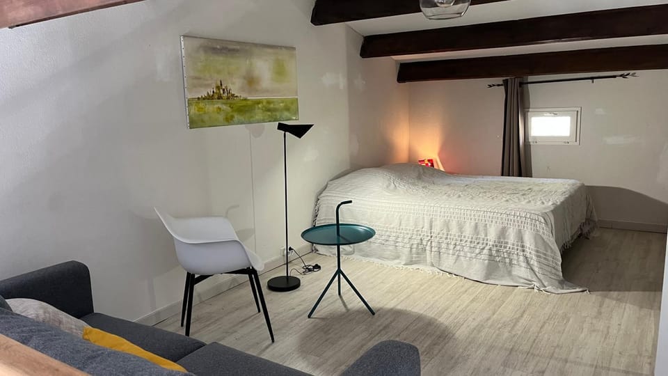 La vue depuis la terrasse, la situation géographique en retrait des grandes cités balnéaires, la grande chambre sur la mezzanine et l'arrivée autonome grâce à la boîte à clés.